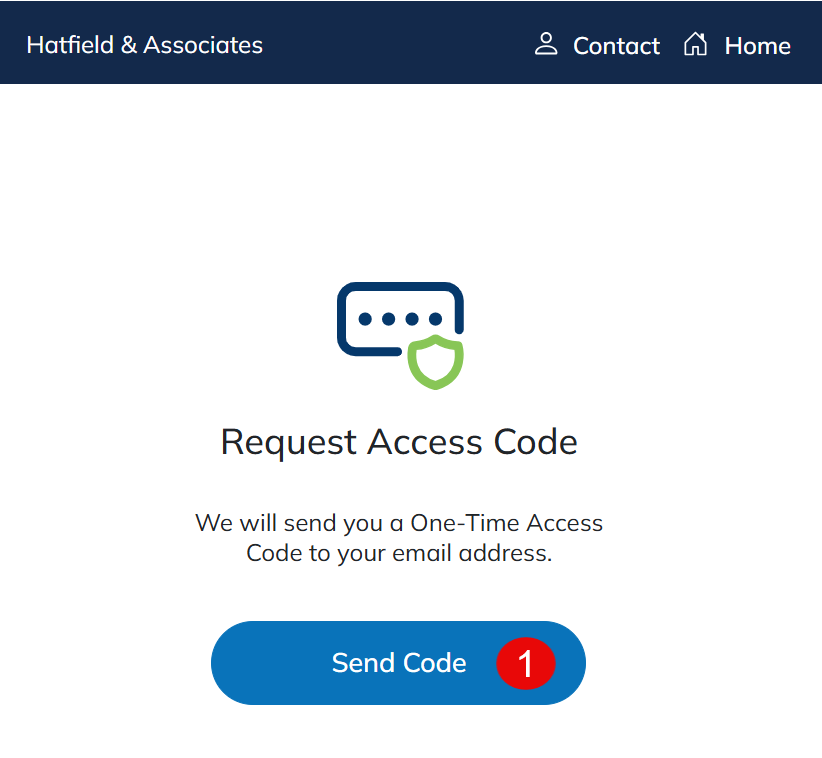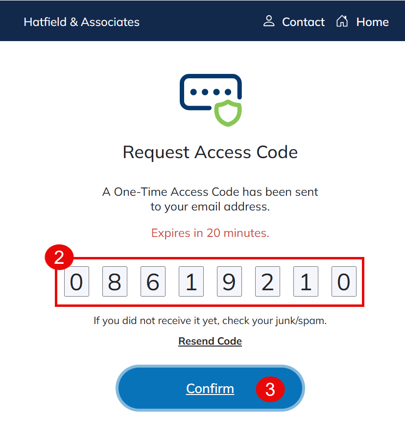 - Email Access Code: An 8-digit access code is sent to the same email address as the initial email was sent to.